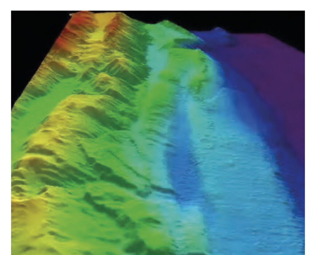 Ed. Picture from HMS Scott‘s multi beam side scan sonar.