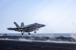 An F/A-18E Super Hornet from Strike Fighter Squadron 81 launches from the flight deck of the USS Harry S. Truman (CVN-75). The need for carrier air wings remains significant, but the wings and aircraft are too few in number to operate without attritable precision mass alongside. US Navy